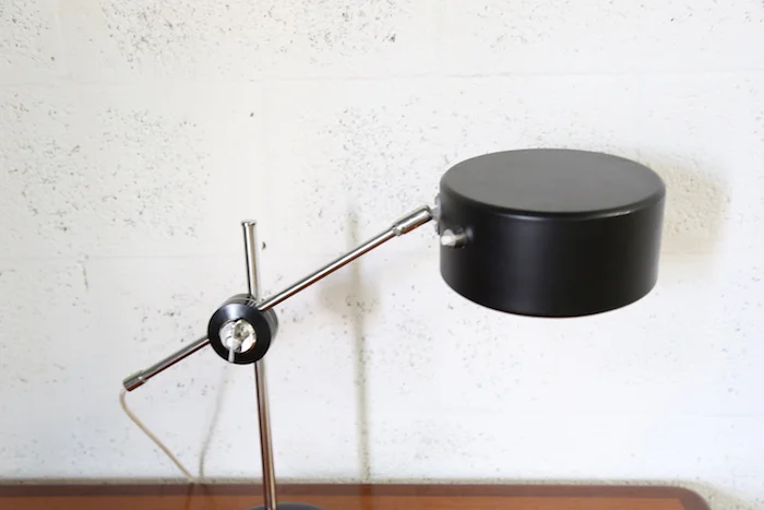 A great little table lamp with a 1960s vibe. Created by Ateljé Lyktan in Sweden a classic shape. The table lamp has swivel movement in the shade. It has a few scratches on the paint but in overall good condition. Acrylic glare shade is missing. Converter is included.